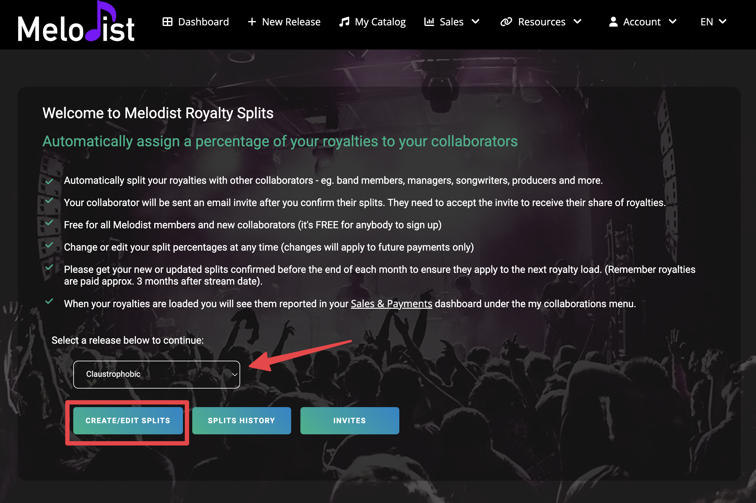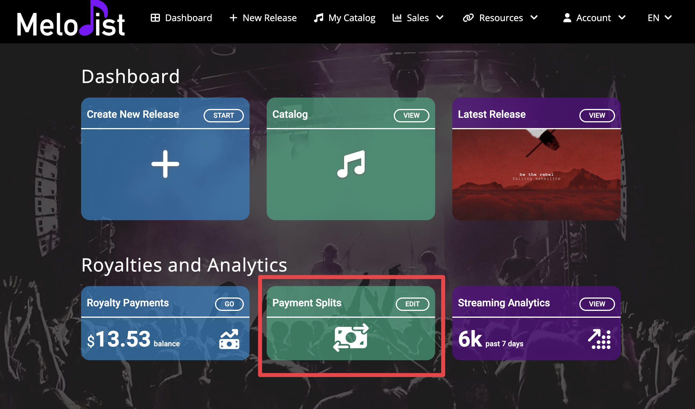 With Melodist, payment / royalty splits are easy and free for all of your collaborators! When you assign a split to them they'll be prompted to a create a free account where they can cash out their royalties directly to their bank account.