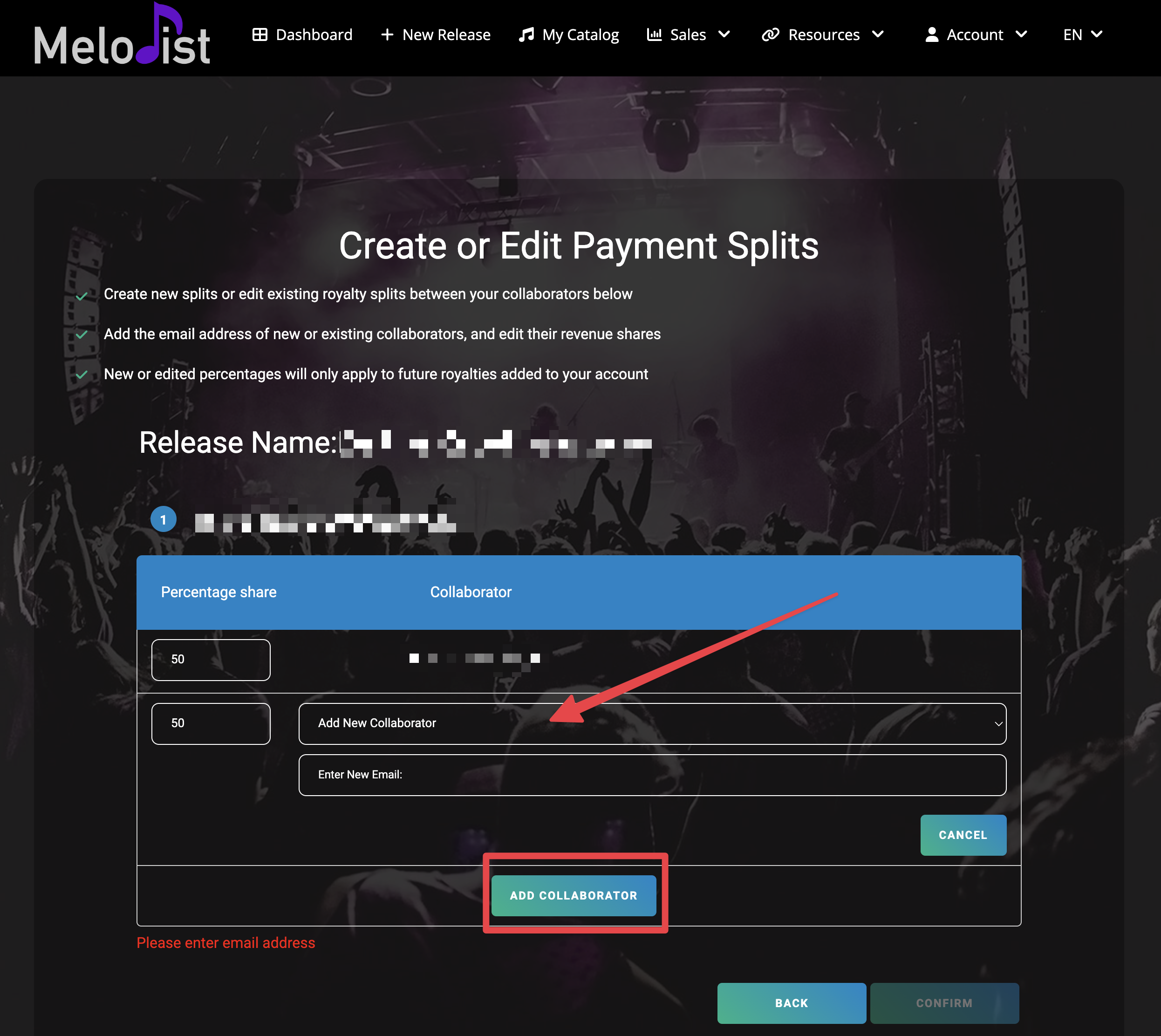 That's it! Your collaborators will receive an email invite to create a free account at Melodist and cash out their royalties.