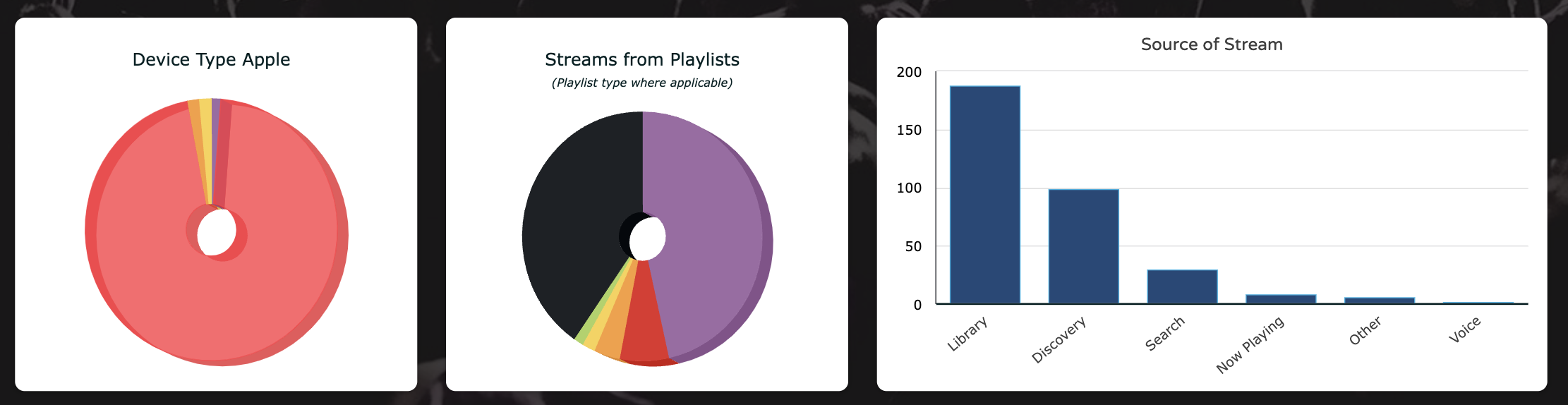 If you choose Apple Music you'll get device type, playlist streams and source of streams. These are not available on Apple Music for Artists and can be quite useful when determining where your Apple Music streams are coming from.